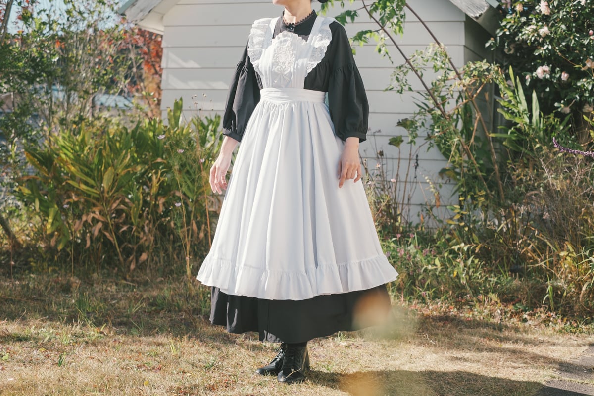 夏のお屋敷で客人をおもてなしするのに相応しい、華やかで軽やかなメイド服を作りました。